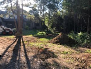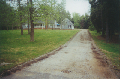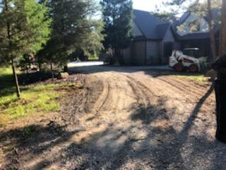 The images left show that we had to perform a little extra landscaping to the right side of the tree cluster. We had to add some extra soil, compact it and level everything out, then after the grading and gravel the asphalt could be applied for a beautiful loop that kept the cluster of trees as a nice landscaping accent.